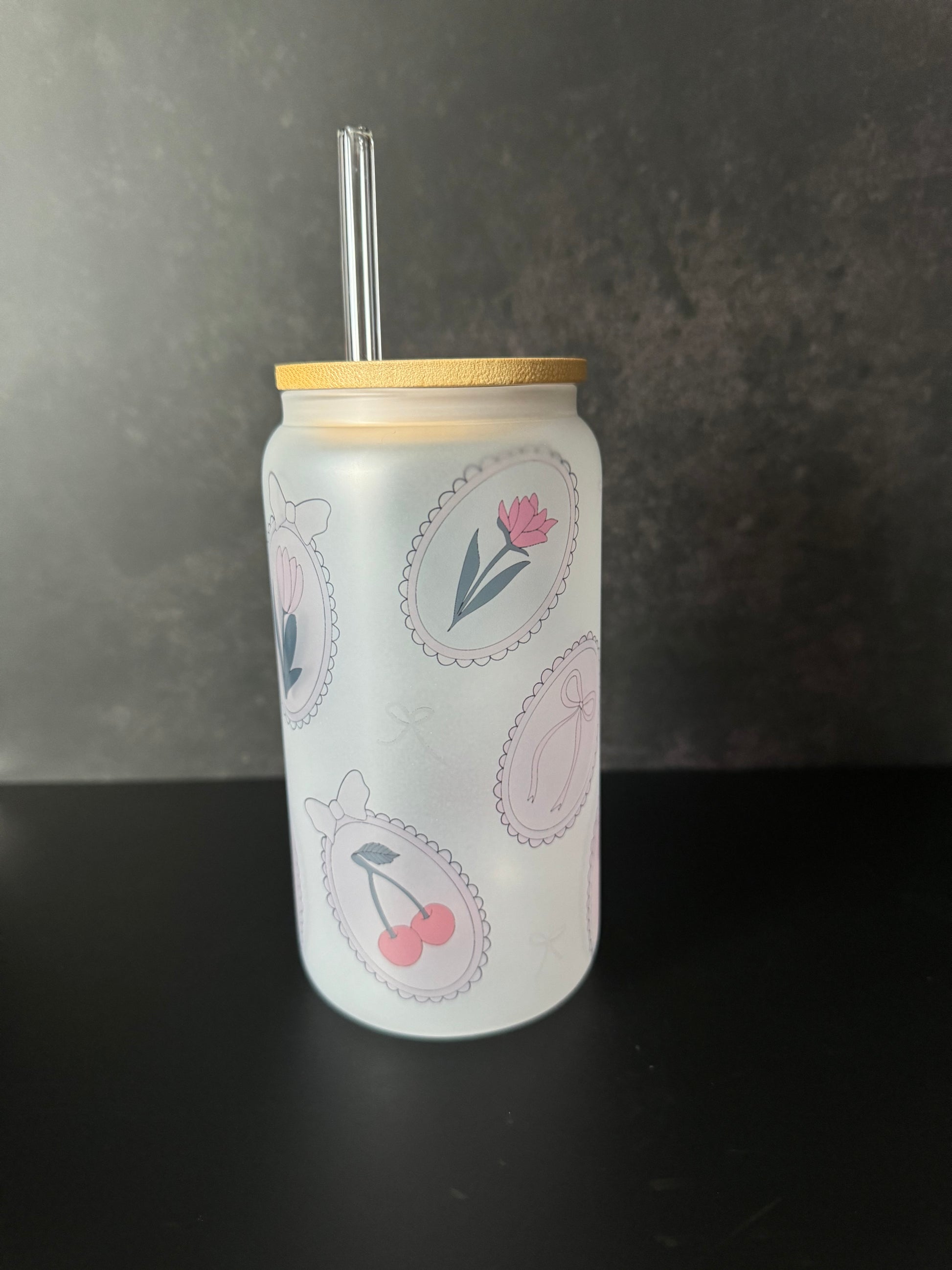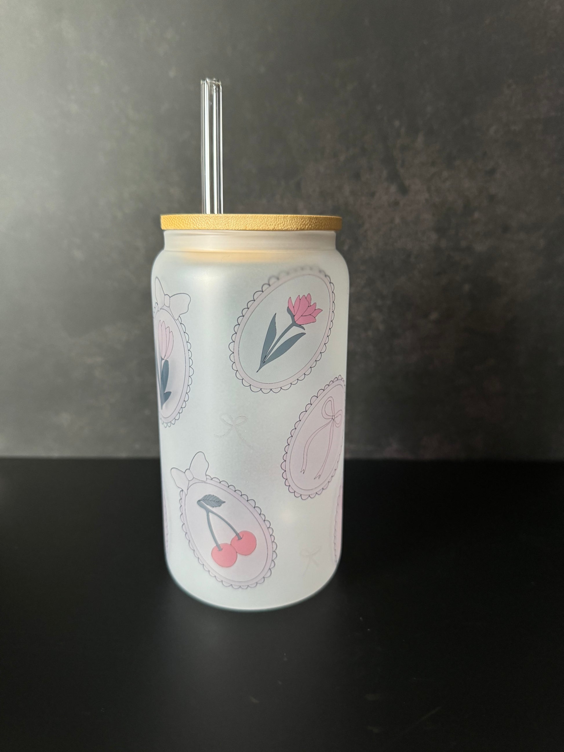 16oz sublimated frosted glass cup with bamboo lid & straw
