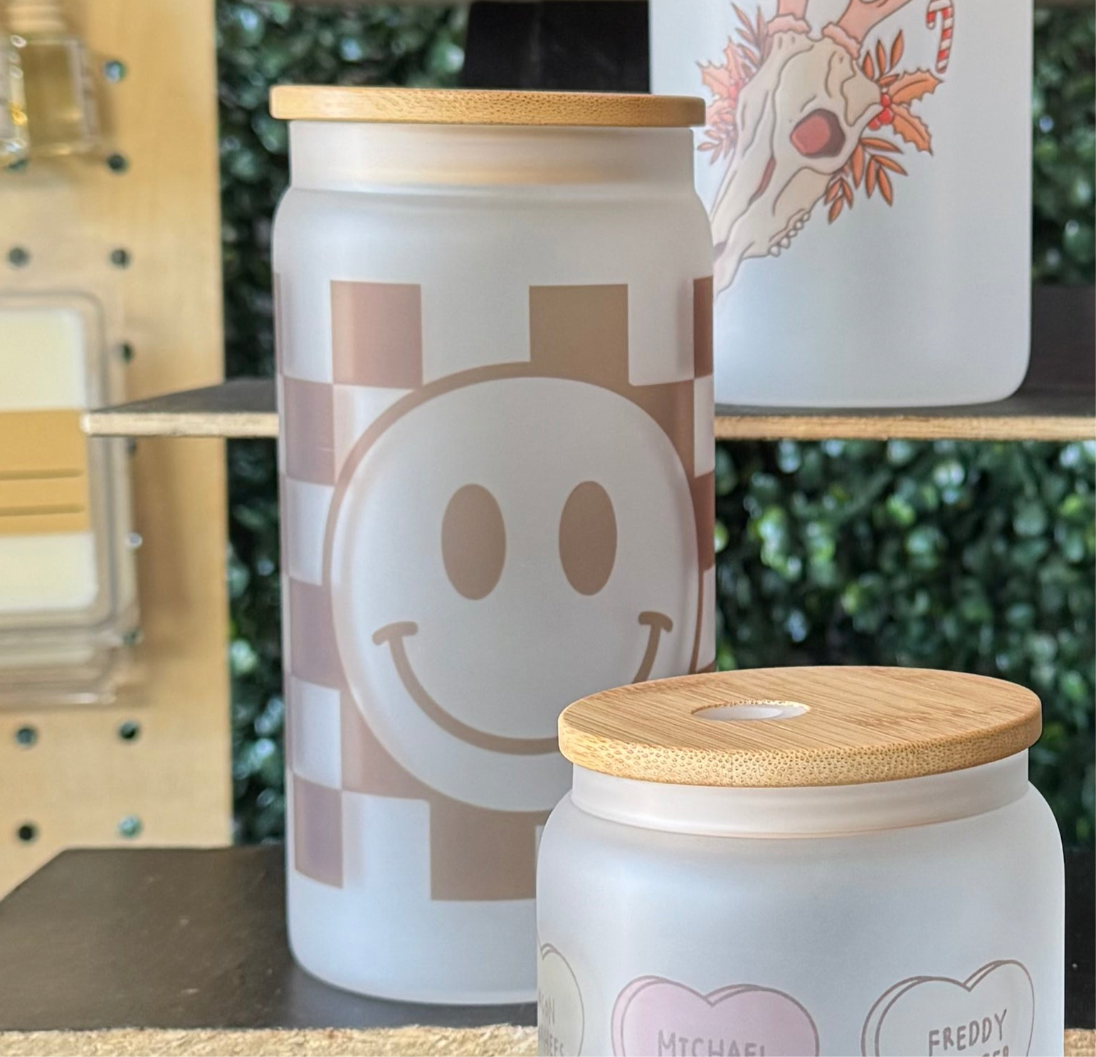 16oz sublimated frosted glass cup with bamboo lid