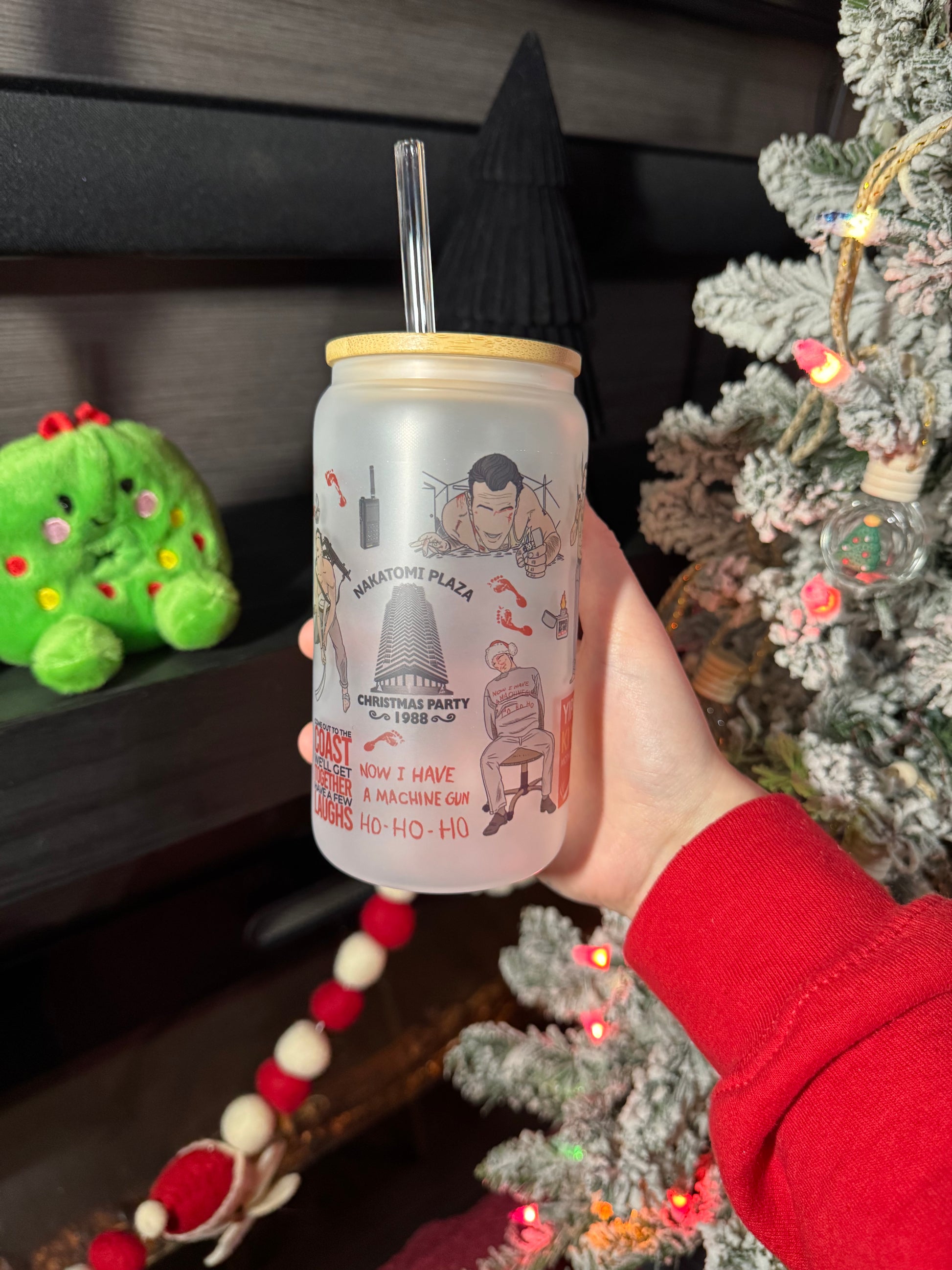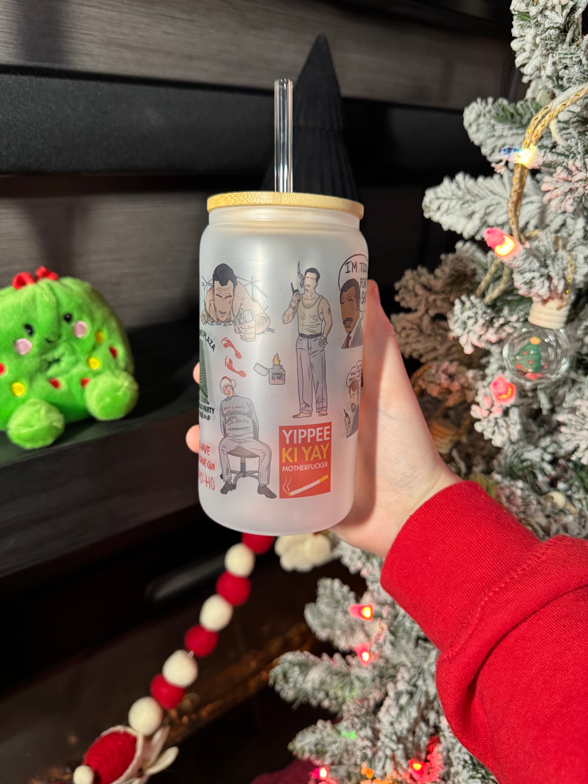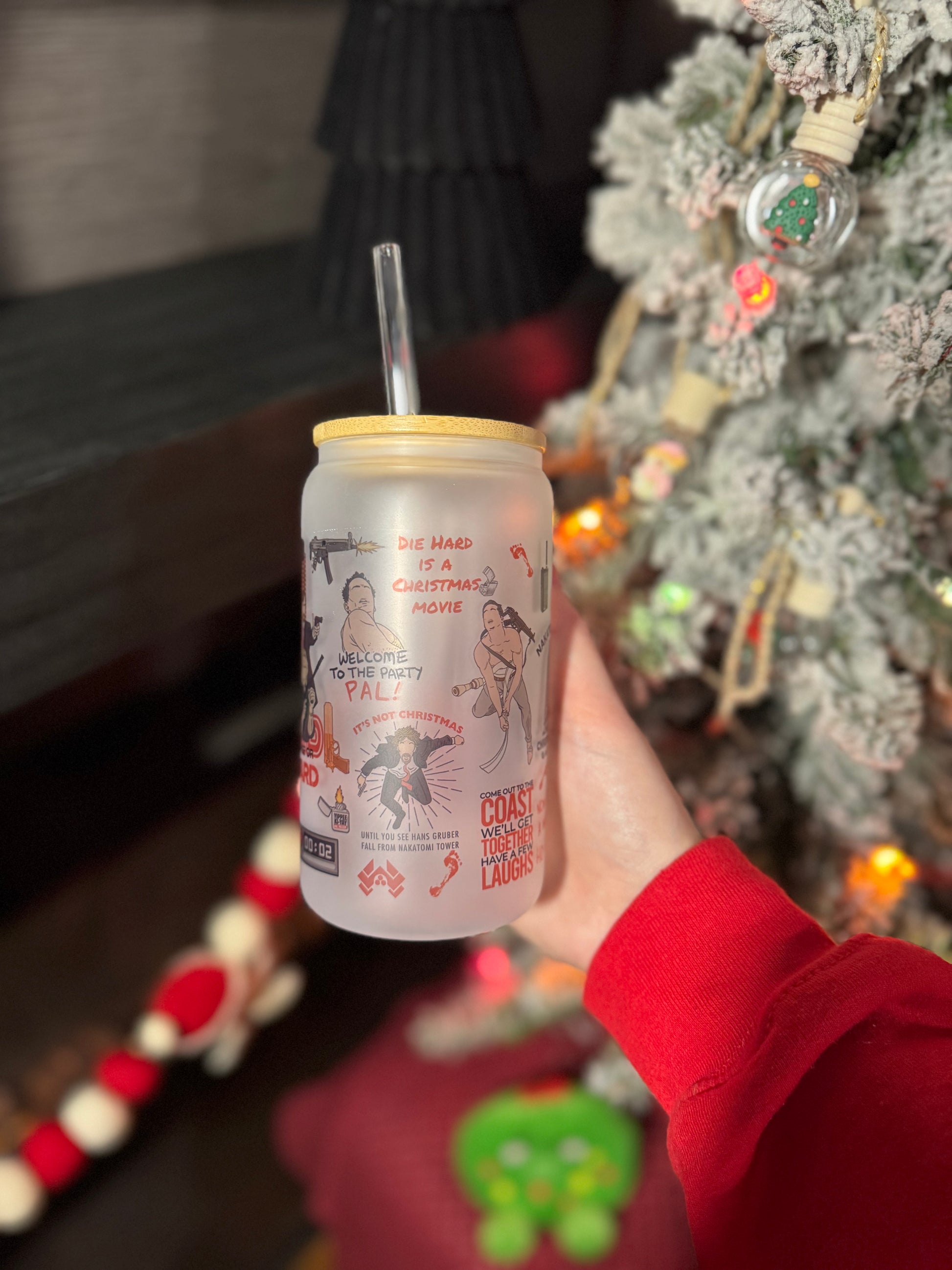 16oz sublimated frosted glass cup with bamboo lid and straw.
